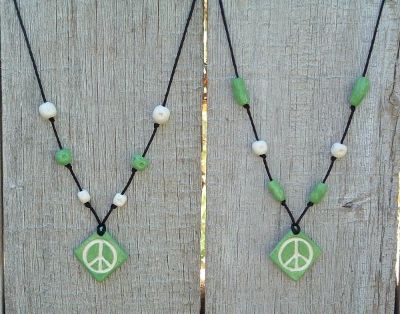 PEACE NECKLACE Kiln Fired Ceramic Beads on a black satin cord.
