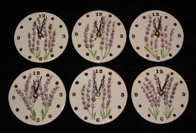 Lavender Clocks run on one AA battery. This is our small size approx. 4" around. $24.00 each