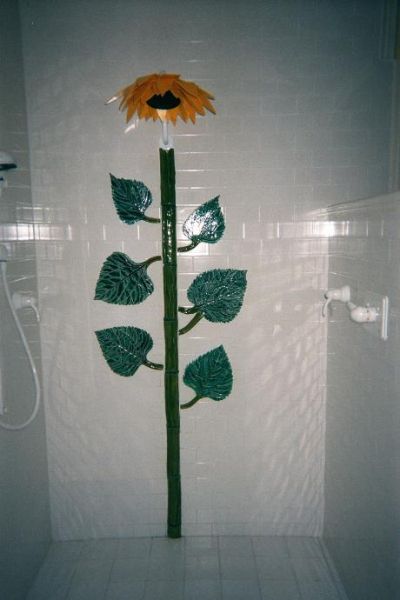 The Sunflower Shower was a custom tile job for the Spa at the MacArthur Place Country Inn. You can also see some of Lori's other art work in the Spa gift shop. Located in Sonoma, CA.