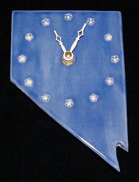 Nevada Blue Clocks are handmade in Carson City and run on one AA battery. Sizes are 4" x 6" $24.00 & Large Nevada clock 6" x 9" $35.95
